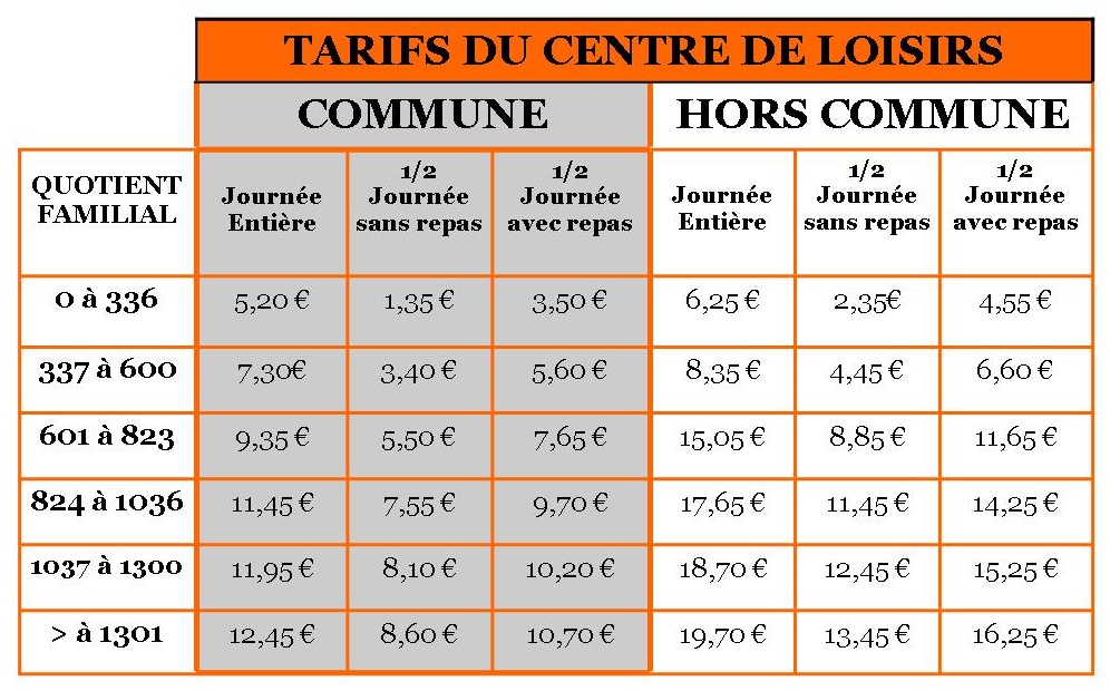 ·Le repas et le goûter (en fonction de la nature de l’inscription). Le coût du repas est de 2,50 €.